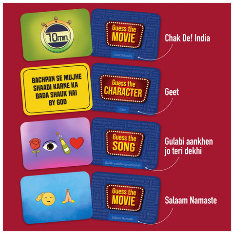 Your filmy fiesta comes with 200 exciting game cards packed with Bollywood movies, songs, and stars from different eras, plus an easy-to-follow instruction manual. Everything you need to test your Bollywood knowledge and create legendary game night moments!