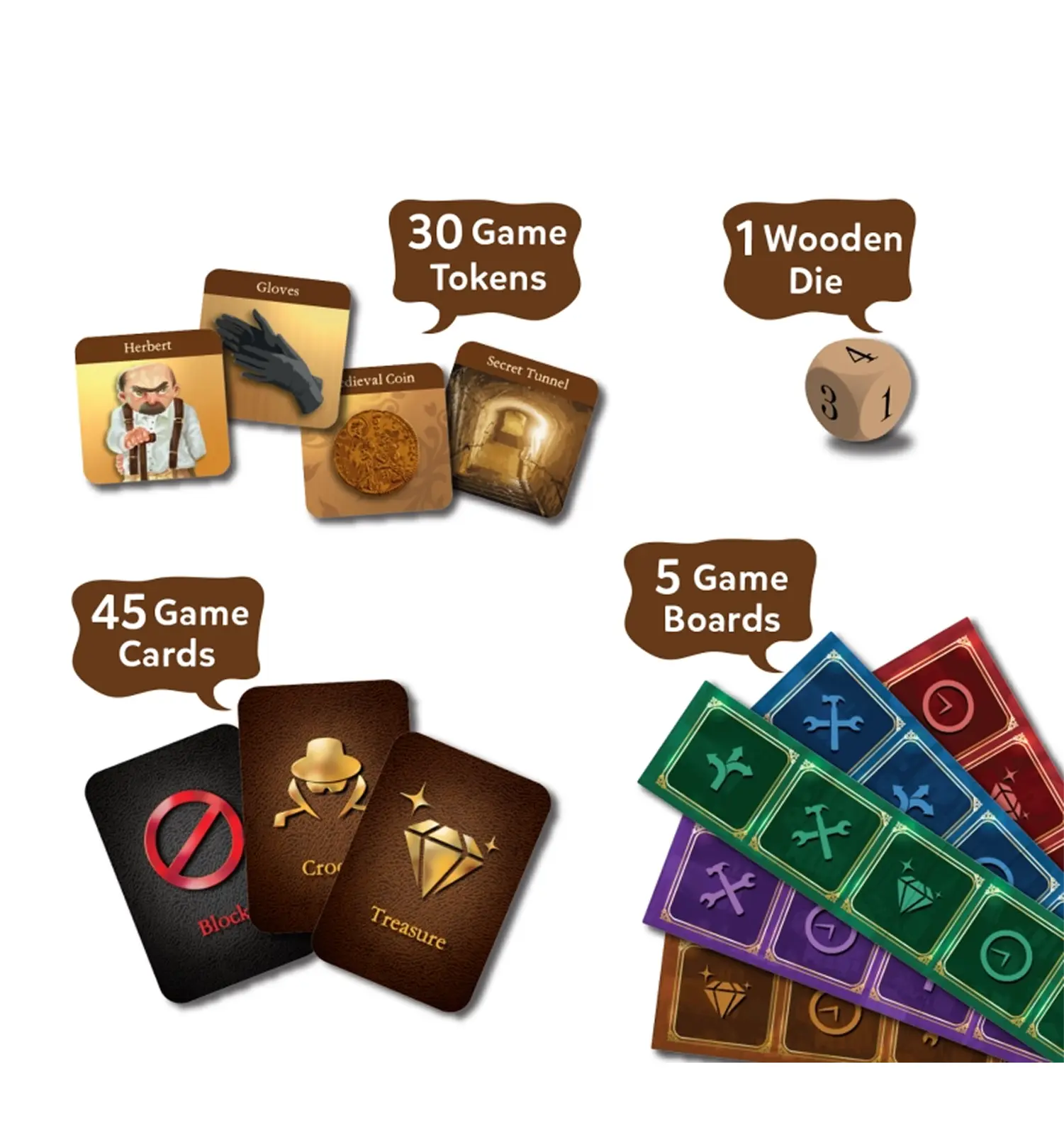 The first player to collect all their tokens and land on the “Crook” wins the game! With Game Cards keeping the game unpredictable, you never know what twist is coming next.