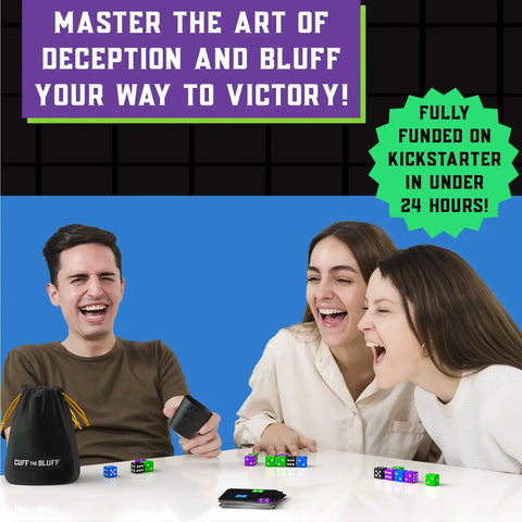 1. Players take turns selecting a die from the bag, shaking it in the cup, and secretly noting the result. They then pass the cup to another player, claiming a number honestly or bluffing. If a bluff is caught, the bluffer adds the die in the cup to their sequence. However, if the bluff is not caught, the other player adds the die to their sequence instead.