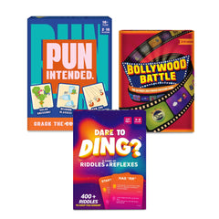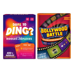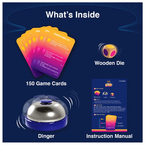 Dare to Ding is a first of its kind, fast-paced game of riddles and quick reflexes! On your turn, roll the die, and draw a card! The die decides the difficulty of the riddle, so players must be ready for anything!
